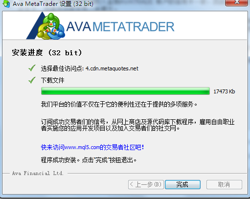 7、到这一步,MT4交易平台就安装完成了,点击完成退出。